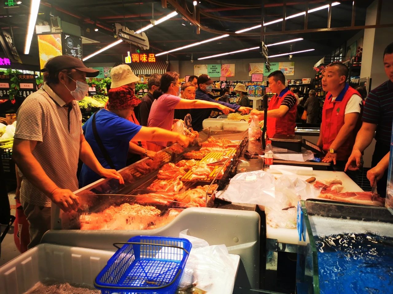 凤凰街生鲜集市实体店位于凤凰街215号南侧,建筑面积430平方米,当消费者走进新开业的凤凰街生鲜集市,映入眼帘的是窗明几净的购物环境,店内货架排列有序,安全出口、疏散通道畅通,日常用品区、果蔬区、鲜肉区、休闲食品等划分整齐,上千个品种琳琅满目,价格亲民惠民,0.28元的上海青、不到1元的洋葱、黄瓜、1.98元的西瓜、16.98元的腿肉……物美价廉的农副产品让前来选购的居民笑开了怀,一大早就排起了长长的队伍,预计不久后将成为姑苏区凤凰街夜市经济的网红打卡场所之一。